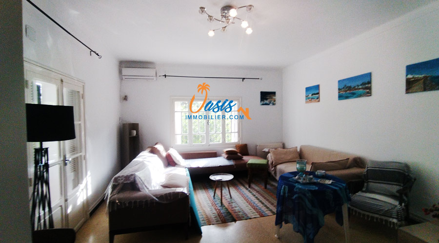 A louer villa arabo a Hammamet dans un quartier calme plein pied S+3 de avec un jardin de 1000m² unique, la villa composé de abri de deux voiture , un grand jardin, un salon,cuisine,SDB,3 chambre. a 400m de la plage