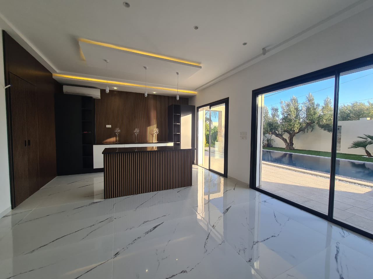 - Un salon lumineux avec terrasse donnant directement sur la piscine