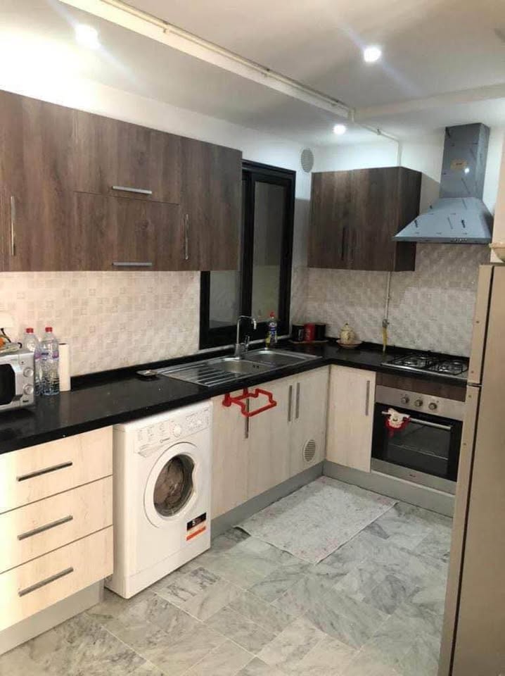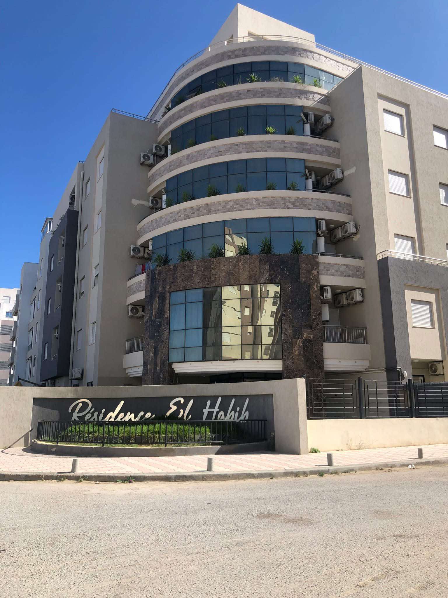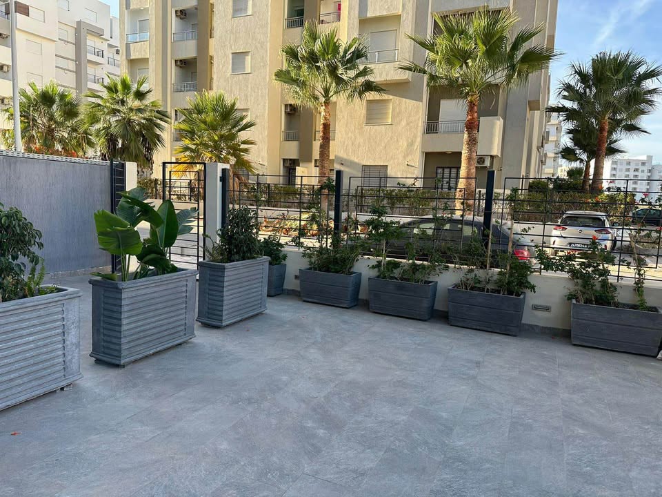 À louer un magnifique appartement **S+2 haut standing**, idéalement situé dans une **résidence sécurisée et gardée** à **Hammamet Nord – Mrezga**, dans le quartier résidentiel calme de la **cité AFH**.