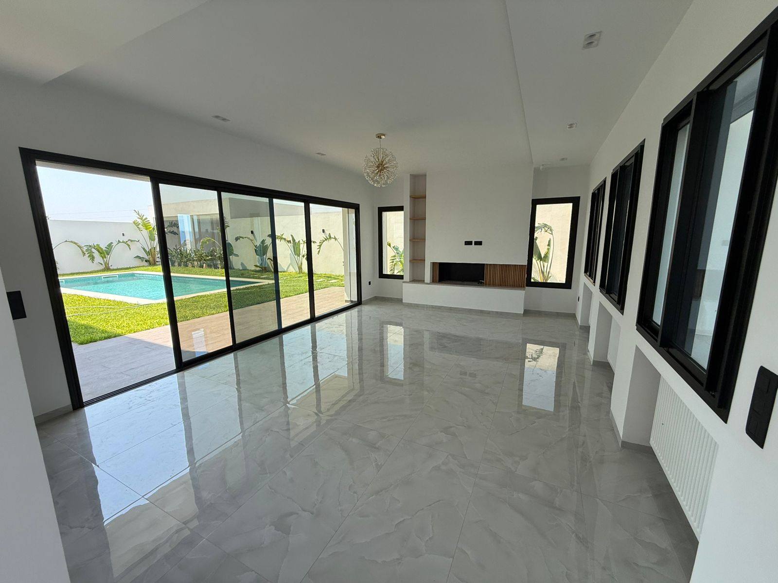- Un salon lumineux avec terrasse donnant directement sur la piscine